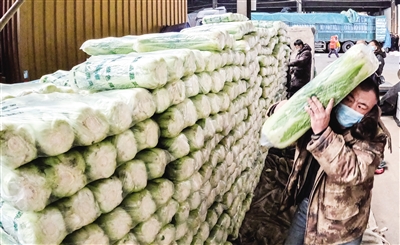 在蔬菜批发大厅内记者看到,各地运输蔬菜的车辆有序排队进入,工人们忙着卸货搬运,商贩们告诉记者,呼和浩特出现疫情以来,蔬菜运送没有出现断货情况,价格也没有明显涨幅,一切正常有序。“如今,蔬菜市场中白菜最为抢手,今天早上从河北运送来的2万多斤白菜,目前已销售了近2/3,预计明天早上就销售完了。目前,白菜价格稍有涨幅,每公斤涨了0.4元。”商贩张宪军说,白菜价格的涨幅,主要受运输成本增加所致。