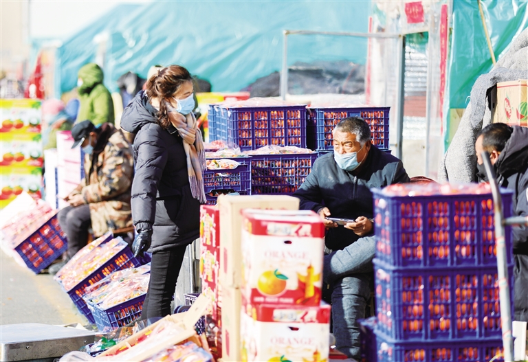 “市场供应完全可以满足市民需求,发现哪种货物少了,我们会及时对接补货。如今,蔬菜绿色通道畅通无阻,货物充足,价格也和往常一样,有的蔬菜稍有上涨,上涨在0.2元/公斤左右,均趋于合理范围之内。”食全食美美通农产品批发市场蔬菜部带班班长姜永明说,市场内销售的大白菜、牛心菜、土豆、葱头、胡萝卜、西红柿和黄瓜等30多种大众蔬菜都货物充足,价格平稳。在稳定物价中,若有商贩私自涨价,市场会对其进行相应的处罚和处理,有力保障了市民的生活需求。随后,记者在该市场内的水果批发区、肉类和农副产品批发区看到,各类货物均供应充足、价格平稳。