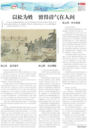 “如障、如屏、如锈画,似幢、似盖、似旌旗”,松,得风雨锻造洗涤,得阳光浸染润泽,终成强大的气势。松姓,也从这份顽强中翩跹而生。