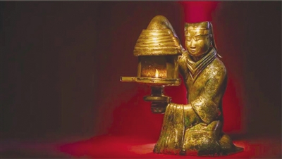 目前已出土的汉代釭灯至少有9件,人物造型极罕见。因青铜成本高,人物铸造的难度尤其大,非内府难出精品。东汉中后期,私营手工业崛起,官府手工业衰落,长信宫灯这样的精品渐成绝唱。(据《北京晚报》)
