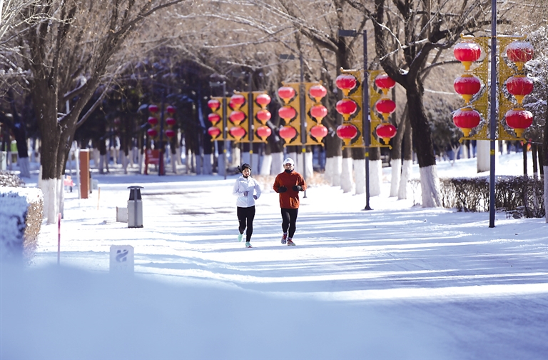 3月1日,市民在沈阳奥林匹克公园内跑步。 当日清晨,沈阳市飞雪过后天气转晴,市民纷纷走出家门,迎接春日的阳光。 摄影/新华社记者 杨 青