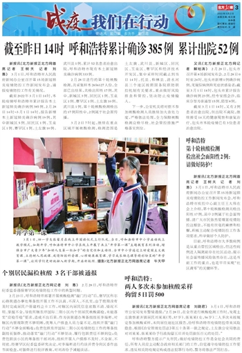 截至昨日14时 呼和浩特累计确诊385例 累计出院52例