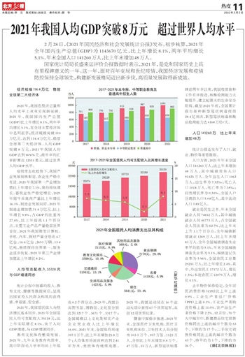 2021年我国人均GDP突破8万元 超过世界人均水平