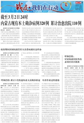 截至3月2日24时内蒙古现有本土确诊病例320例 累计治愈出院110例