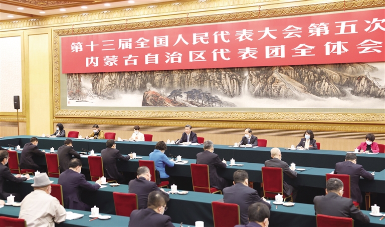 内蒙古代表团审议热烈,气氛活跃。张磊、郭艳玲、贾润安、王晓红、冯艳丽、赵会杰、史玉东等7位代表分别就完整准确全面贯彻新发展理念、加强草原生态建设、煤化工产业助力实现碳达峰碳中和、将铸牢中华民族共同体意识融入办学治校教书育人全过程、为实现高质量发展贡献航天力量、推进乡村振兴、振兴民族奶业等问题发言。习近平不时插话并记录。