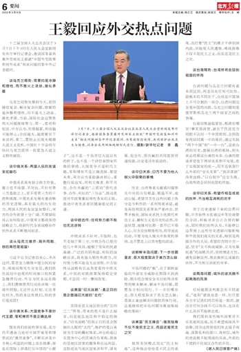 王毅回应外交热点问题