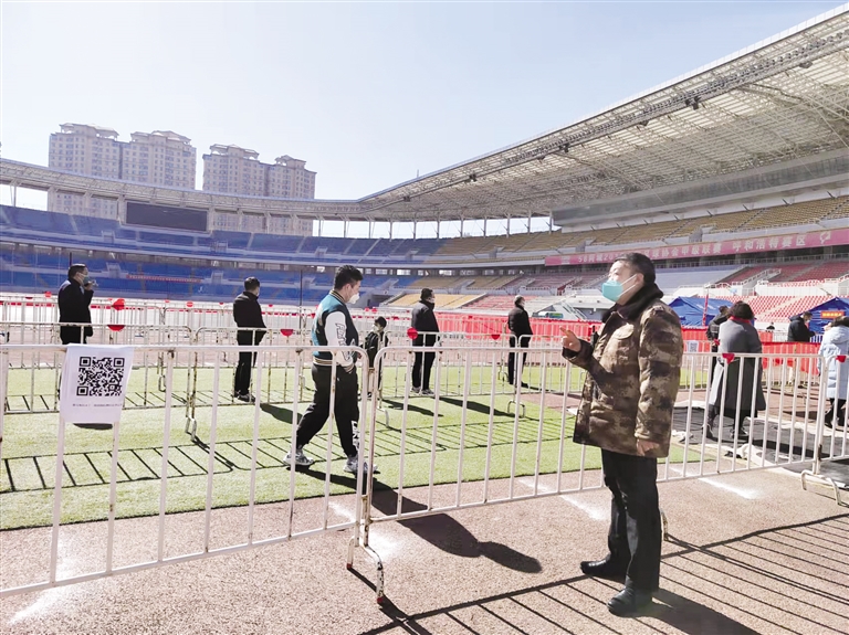 物资准备、扫码登记、体温测量、消杀防疫……2月24日上午,在玉泉区的9个核酸检测点,玉泉区民兵应急连副连长吕春海带领着80余名民兵奔赴一线,协助医护人员开展第六轮核酸检测。他本人更是承担起联络协调和内部管理等工作,连轴转工作到凌晨是家常便饭。