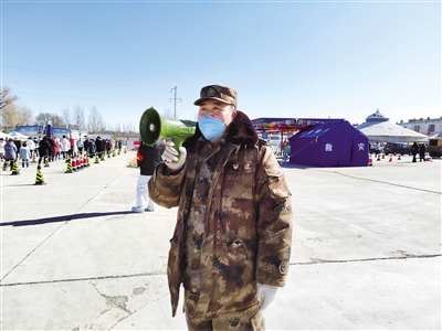 吕春海的女儿吕杰是一名大一学生,正值放假期间,她主动向爸爸提出申请做一名疫情防控志愿者,被安排到席力图召广场核酸检测点,负责信息登记、入户排查、维持秩序。工作忙碌起来,经常是连一口热水也顾不得喝,可19岁的她却从未报怨。