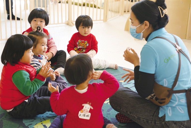 近日,上海市静安区江宁路街道的首批两家“宝宝屋”分别在社区党群服务中心和综合为老服务中心开始试运营。这是静安区教育局与江宁路街道合作试点的首批公益普惠的社区“宝宝屋”,为有幼儿的家庭提供临时性、计时制的集中照护和育儿指导服务,缓解临时性托育难题。摄影/新华社记者 刘 颖