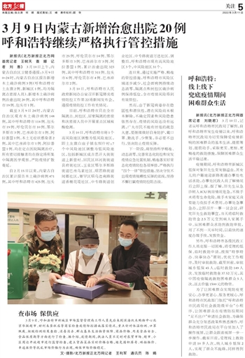 3月9日内蒙古新增治愈出院20例 呼和浩特继续严格执行管控措施