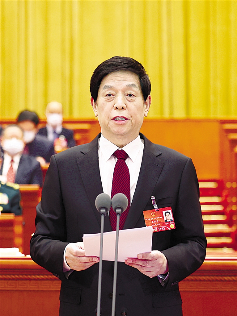 3月11日,第十三届全国人民代表大会第五次会议在北京人民大会堂闭幕。大会主席团常务主席、执行主席栗战书主持闭幕会并发表讲话。   摄影/新华社记者 黄敬文