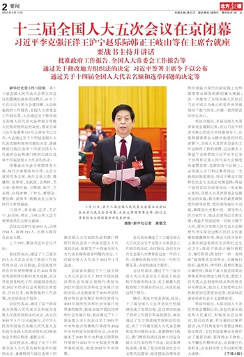 ~~~习近平李克强汪洋王沪宁赵乐际韩正王岐山等在主席台就座 栗战书主持并讲话 批准政府工作报告、全国人大常委会工作报告等 通过关于修改地方组织法的决定 习近平签署主席令予以公布 通过关于十四届全国人大代表名额和选举问题的决定等