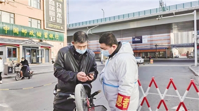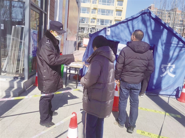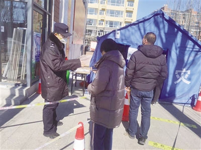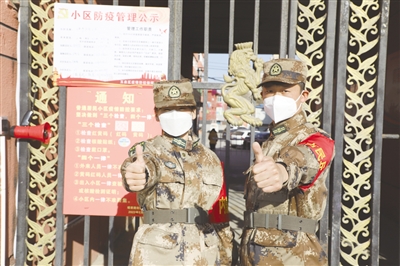 “您好,我们需要测量一下您的体温,请您配合!”“请出示一下健康码及核酸检测标识。”3月7日,在呼和浩特市玉泉区小黑河住宅小区卡点,郭静和妻子徐泽清正在执勤,一边核查信息、测量体温,一边督促居民们尽量减少外出。夫妻俩是玉泉区民兵抗疫队伍中的一对夫妻“搭档”,本轮疫情发生后,他们闻令而动,昼夜守护着小区的安全,为小区居民竖起坚强有力的抗疫“防火墙”。