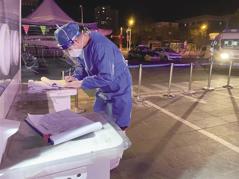 为做好志愿服务工作,两个人每天连续工作8小时,只能在结束工作后通过视频与父母和孩子交流。“两个孩子从未离开过妈妈,每天视频时都会缠着我们,让我们早点接他们回家……”说到此,赵慧宇眼眶湿润,她告诉记者,虽然面对家人有所亏欠,但自己无怨无悔,特殊时期,所有人都很辛苦,都在无私付出,自己和丈夫做的事,与一线医务人员的付出相比微不足道。