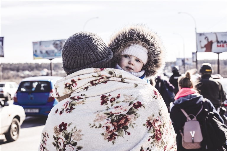 3月11日,人们在乌克兰基辅州伊尔平通过人道主义通道撤离。乌克兰副总理伊琳娜·韦列修克12日表示,乌方将继续在扎波罗热、马里乌波尔、基辅州、苏梅等地开通人道主义通道,11日乌方共疏散了7144人。(据新华社报道)