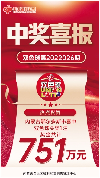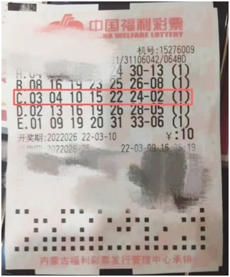 仲春伴花开,彩球汇大爱。3月10日晚,中国福利彩票双色球游戏进行第2022026期开奖。当期双色球红球号码为03、04、10、15、22、24,蓝球号码为02。本期双色球游戏头奖开出10注,单注奖金为751万多元。这10注一等奖花落8地,其中1注出自我区鄂尔多斯市。二等奖开出129注,单注奖金24.41万元,我区还收获3注二等奖。计奖后,奖池累计金额为18.20亿多元。据了解,这注双色球一等奖出自我区鄂尔多斯市东胜区鄂托克东街32号第15276009号福彩销售站,中奖彩票为一张10元单式5注的机选彩票,其中第3注号码与当期中奖号码一致,收获奖金共计751万多元。 再次恭喜中奖的幸运彩民以及出自头奖的销售站,截止双色球游戏第2022026期,我区已经收获4注双色球一等奖。