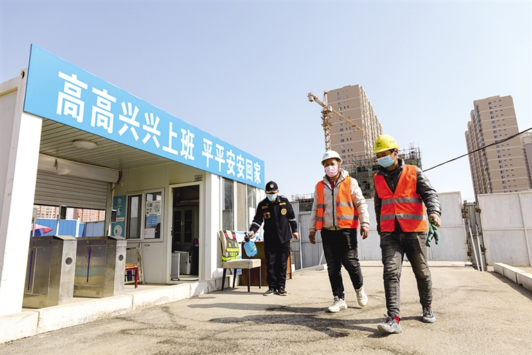 当日10时,记者在该施工项目部看到,工地只保留了一个出入口,进入工地的工人必须先登记身份信息,接受体温检测,使用消毒液消杀,佩戴好口罩做好防护后才能进入施工区和办公区。施工现场还组建了专业消毒队伍,对办公区、施工现场、入口和公共场所进行全面清洁消毒,避免交叉感染。