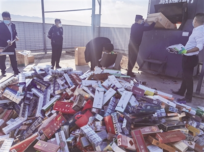 3月15日,阿拉善盟公安局环食药侦支队、阿拉善盟烟草专卖局联合阿拉善盟邮政管理局等部门开展“3·15国际消费者权益日”假冒伪劣卷烟集中销毁行动。此次集中销毁行动采取无害化方式进行,共计销毁假冒、走私卷烟2500余条,涉及国内国际品牌291个,总价值71万余元。文/北方新报正北方网首席记者 刘晓君 摄影/王多生