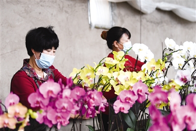 3月22日,在位于呼和浩特市新城区的内蒙古丽翚苗木种植基地,工作人员正在打理蝴蝶兰。据了解,该基地在做好疫情防控的同时,也加大生产力度,培育出28种蝴蝶兰,销往北上广等一线城市,并为周边百余名村民提供就业岗位,带动他们增收致富。