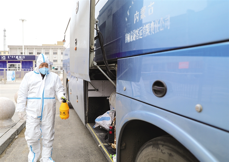 在呼和浩特火车西站,防疫人员正在对火车站周围进行全方位消杀。在入口处,防疫人员要求乘客全程佩戴口罩,测体温,出示核酸证明、行程记录。在出站口的疫情防控卡点内,防疫人员提醒乘客提前扫码,出示核酸证明、有效证件,有序出站。