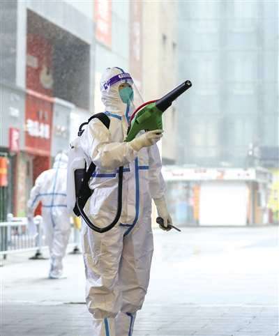 在维多利·时代城内,部分商家已经陆续营业,防疫和保洁人员全面做好防疫和卫生工作,商场内加强了空气流通,定期清洁和消毒。在商场地下一层入口处,顾客进入前需要量体温、扫码。安保人员不断提醒顾客做好个人防护,佩戴口罩,购买商品和交谈时要保持一定距离。在美食街,部分餐饮店只提供外卖服务,最大限度避免了人群聚集和交叉感染。