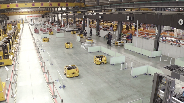沈阳海尔冰箱智能工厂一栋占地7.8万平方米的厂房里,智能运送设备在地上和空中来回穿梭,生产线上尽是忙碌的机械手,每10秒就能下线一台冰箱。