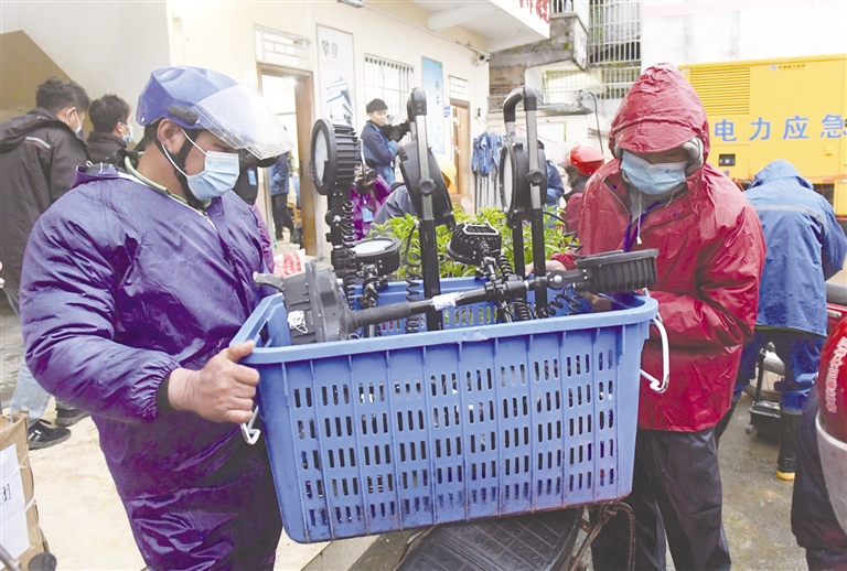 为方便雨天通行、开展搜救工作,工作人员在泥地上铺设了一条竹编的小道。他们还调集消防泵,在核心区坠机点西边2米处的积水点开展排水作业,为事故原因调查清除障碍。