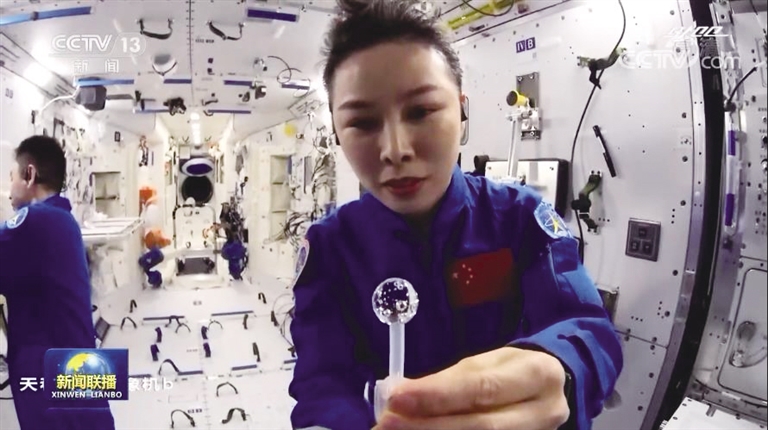 3月23日下午,中国空间站“天宫课堂”再度开课,“太空教师”翟志刚、王亚平、叶光富演示了太空“冰雪”实验、液桥演示实验、水油分离实验、太空抛物实验等。