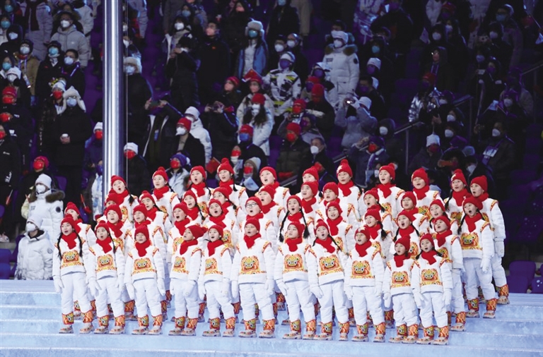2月4日,开幕式正式演出那天,孩子们果然没有怯场。他们专注、投入,勇敢而明亮。用高水平的演出,打动了全世界。