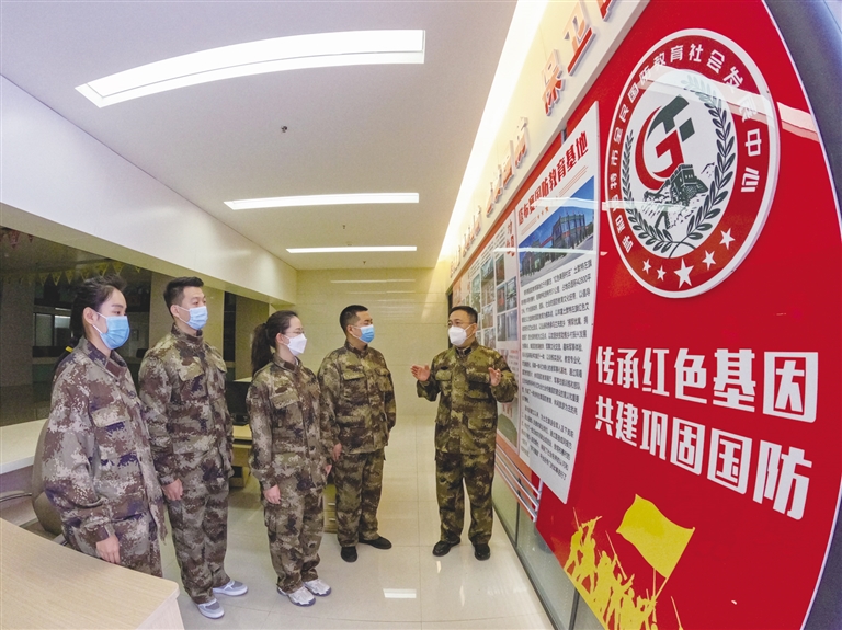 3月24日10时,在测量体温、登记信息、出示青城码后,记者走进新城区创新创业服务中心,在工作人员引导下来到塔布赛国防教育基地,教育基地内正在开展国防理论教学和军事技能培训。
