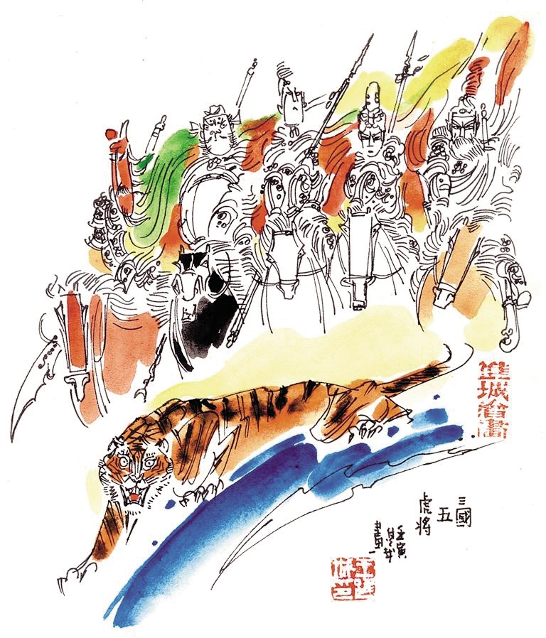 刘备虽未被贴上虎标签,但他手下有鼎鼎大名的五虎上将关羽、张飞、赵云、马超、黄忠。五虎上将又称五虎大将,算是《三国演义》的原创。