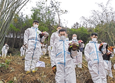 3月27日14时许,广西藤县莫埌村山谷里天气阴沉,山雨欲下。这一天,是“3·21”东航航班飞行事故发生的第7天,事故遇难者哀悼活动在事故发生地搜救现场举行。