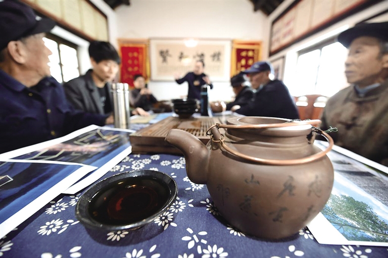不仅是在茶馆里,基层议事也常常在这样的场景中开始:众人围坐一桌,每人面前一杯茶。距离临涣镇600公里之外,黄山市歙县杞梓里镇民主村,村里的大事小情也常常是在会议室的茶香里、在村民们七嘴八舌的讨论和协商中作出决策。
