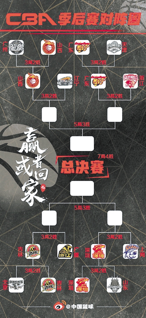 根据相关规则,在季后赛中,常规赛前四名直接进入八强。第5~12名在首轮比赛中捉对厮杀,争夺另外4个八强席位。在首轮比赛的前两个回合交锋中,广东队、吉林队和深圳队均获两连胜,提前晋级八强。前两场战成1:1平的广州队和山西队5日晚进行了第三场决战,决出最后一个八强名额,这是首轮赛事4组对手中唯一打满3场的一组。