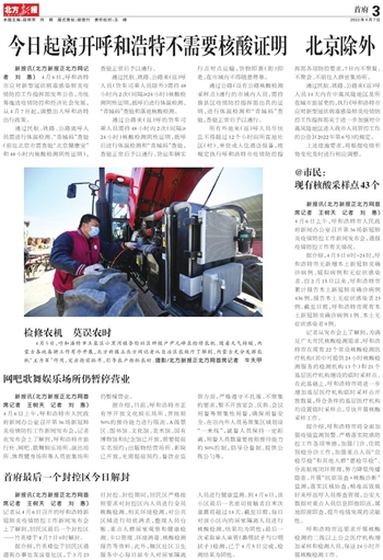 今日起离开呼和浩特不需要核酸证明 北京除外