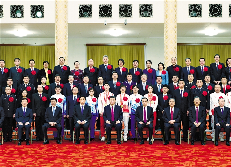 4月8日,北京冬奥会、冬残奥会总结表彰大会在北京人民大会堂隆重举行。会前,习近平等会见北京冬奥会、冬残奥会突出贡献集体代表、突出贡献个人和中国体育代表团成员,并同大家合影留念。   摄影/新华社记者 刘 彬