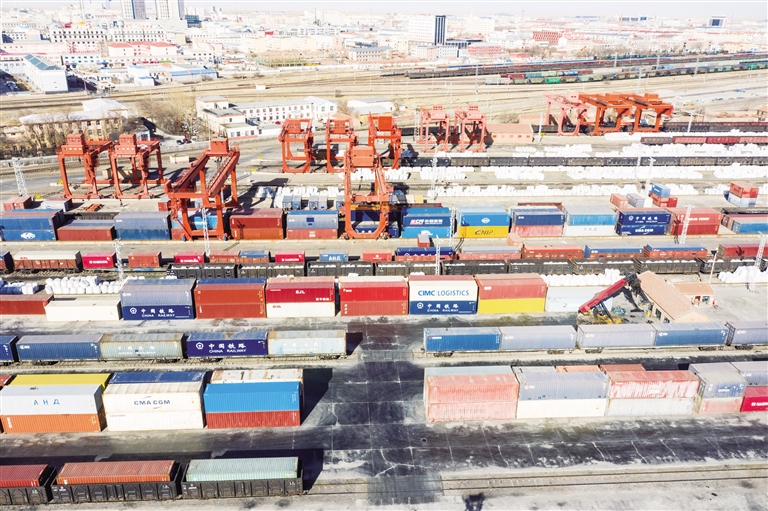4月11日,二连浩特铁路货场满载货物的集装箱摆放有序。今年第一季度,内蒙古出入境边防检查总站二连出入境边防检查站共检查验放中欧班列734列,同比增长25.7%,出口货运量64.20万吨,同比增长41.4%,2022年首季实现“双增长”。为确保口岸通关高效顺畅,该站持续优化查验流程,完善快速通关举措,为出入境列车提供“全时段、全天候、零等待”通关服务,努力营造一流营商环境,助力地方经济高质量发展。文/北方新报正北方网首席记者 刘晓君 摄影/郭鹏杰