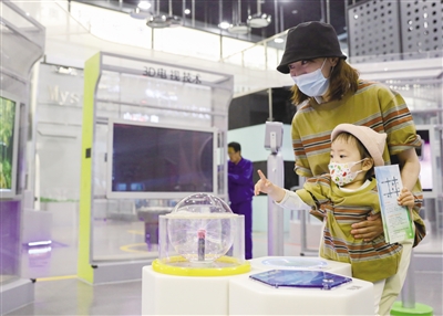 在家长陪同下,一位小朋友怀着好奇心,探索科学的乐趣。内蒙古科技馆于4月6日恢复开馆。所有观众须从科技馆南门进出,全程佩戴口罩,保持“一米线”距离,出示青城码绿码和接种疫苗凭证,经工作人员核验无误后,刷身份证入馆。缺失任何一项必备证明将被劝返。摄影/北方新报正北方网首席记者 牛天甲