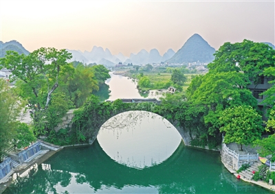 这是广西阳朔遇龙河沿岸景色(4月11日摄,无人机照片)。 春意日浓,广西桂林市阳朔县遇龙河沿岸山青水碧,田园斑斓,宛如一幅幅山水田园画卷。摄影/新华社记者 周 华