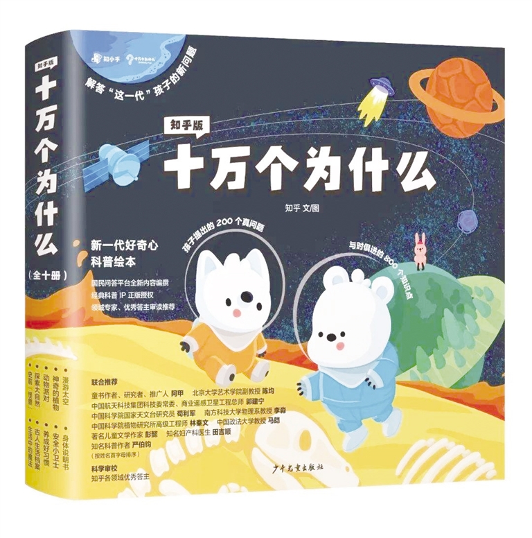 好奇心是人类最值得珍视的财富,好奇心驱动着我们不断探索和发现更大的世界。这一代孩子,比以往任何时代拥有更多信息和知识,也萌发着更多更新的问题。新的“为什么”,需要新的解答。时值少儿经典科普《十万个为什么》出版60周年,知乎携手上海少年儿童出版社推出全新《知乎版十万个为什么》,解答“这一代”孩子的新问题。编者收集了当代孩子的真问题,邀请各领域机构和专家为孩子们写下新答案,其中有为什么扫地机器人不会迷路?宇宙飞船里面的电能从哪里来?它不是单个知识点的科普,每个知识点都是多学科的延伸。(据《北京晚报》)