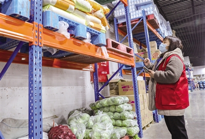 蔬菜配送中心业务经理高静说,“每天从凌晨就开始热闹起来,在蔬菜配送中心聚集了近百个蔬菜经营户摊位,摊主们对配送蔬菜进行分拣、打包,待包装后统一装车,并由专车统一完成配送。”高静表示,如今市民餐桌上的各类新鲜蔬菜,可以说都经历了披星戴月的仪式感,凌晨分拣后打包成一个个蔬菜包,最后统一完成配送。