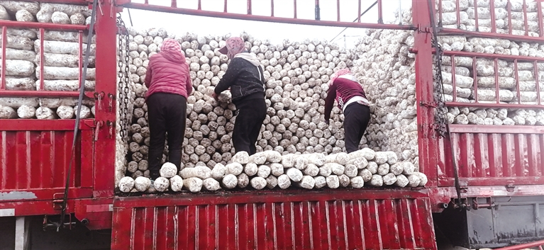 4月17日,在巴彦淖尔市杭锦后旗陕坝镇红星村花菇种植产业园内,村民们正将菌棒搬运进棚。据了解,将有10万花菇菌棒进棚上架,进入培管阶段,4月底出菇,5月中旬头茬花菇就可以上市售卖,可实现年收入30万元以上。红星村将乡村振兴衔接资金投入花菇种植项目建设,建成10栋智能温室大棚,从花菇种植入手,大力开发高回报经济作物资源,持续推进乡村振兴产业建设。