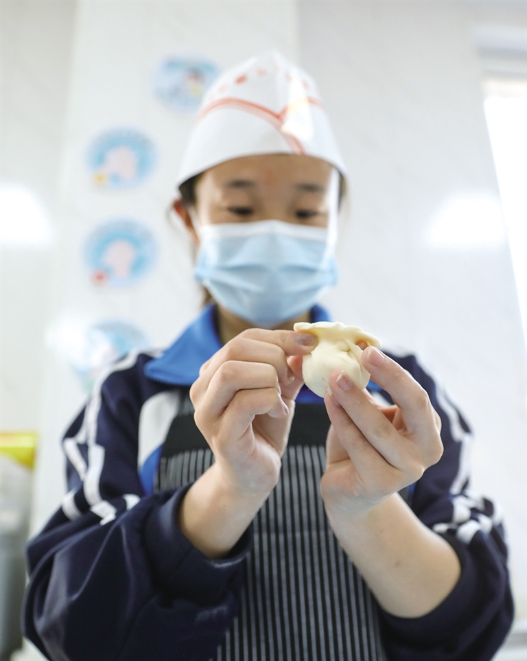 除文化课的学习外,为了让听障孩子未来更好融入社会,呼和浩特市特殊教育学校还开设了工艺美术、中西面点、舞蹈等多门职业课程。