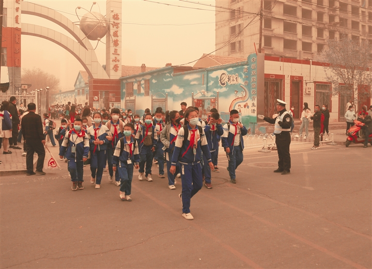 4月20日,临河地区遭遇大风沙尘天气,最大风力达到7级,路面能见度低。为有效预防交通事故的发生,巴彦淖尔市交管支队临河大队加强城区主干道路和学校周边道路指挥疏导和巡逻管控,全力保障恶劣天气下交通秩序良好。