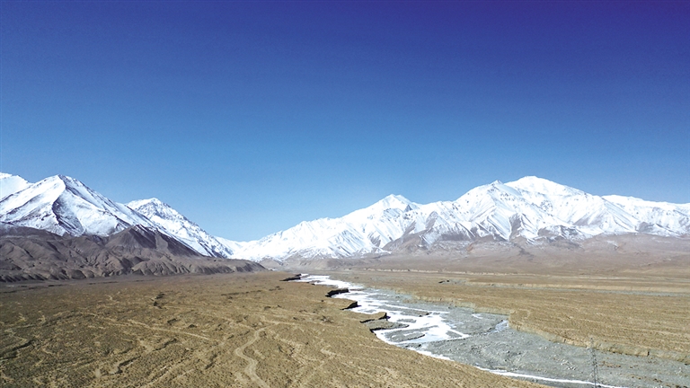 位于甘肃省酒泉市肃北蒙古族自治县党城湾镇境内的雪山高耸陡峭、气势磅礴,与冰川、湿地、峡谷等共同构成壮美的春日风光。摄影/新华社记者 陈 斌