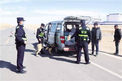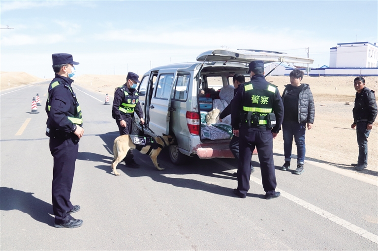 4月24日8时许,乌兰察布市四子王边境管理大队警犬工作队民警牛振带领同事和警犬来到边境前沿地带执行巡逻查控勤务。“‘龙吟’,注意,搜!”伴随着牛振简短的口令,搜爆犬“龙吟”迅速靠近车体,围绕着车身不停地嗅辨。据了解,乌兰察布市四子王边境管理大队的“汪汪队”成员担负着巡逻、搜爆、缉毒的不同职能,排查危险源,守护边境平安。摄影/北方新报正北方网记者 郑慧英