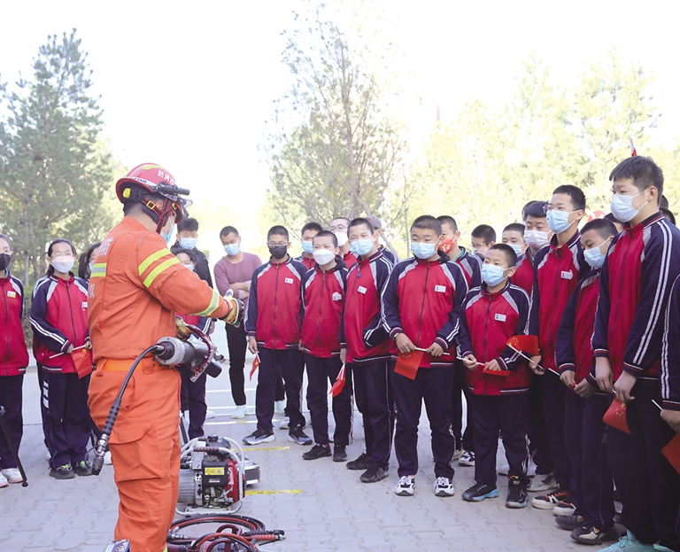 为弘扬“爱国、进步、民主、科学”的五四精神,提高师生消防安全意识和逃生自救能力,呼和浩特市玉泉区消防救援大队联合区团委、教育局走进呼和浩特市锦盛达学校开展“五四精神消防传 激扬青春保平安”春季消防安全主题活动。活动中,消防宣传员播放消防安全教育片,讲解消防安全常识,展示灭火救援器材装备的使用方法(如图),模拟火灾现场逃生,发放《消防安全教育手册》等多项内容,有效增强了师生们的火灾防范和自我保护能力,将安全理念根植在每一名师生心中。文·摄影/齐治嘉 吴明杰