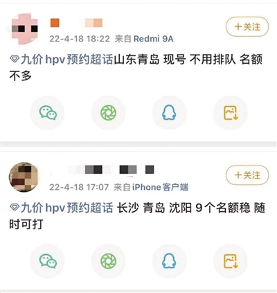 拨打社区医院的电话,关注各大公众号放苗信息,这样的“抢苗”日常持续了近半年,广州市民吴晓还没有打上九价HPV疫苗。当前国内九价HPV疫苗适用接种年龄为16~26周岁,临近26周岁的吴晓心中焦急,通过微博寻找疫苗“黄牛”。在一堆中介小广告中,吴晓添加了其中一个“黄牛”的微信。