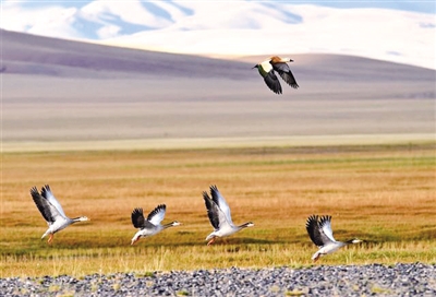 羌塘国家级自然保护区是目前我国面积最大的自然保护区,也是我国大型珍稀濒危高原野生动物的密集分布区,栖息着藏羚羊、野牦牛、藏野驴、雪豹、黑颈鹤等国家一级保护野生动物10种、国家二级保护野生动物21种,被誉为“高寒生物种质资源库”。