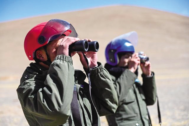 “我们的工作通常都是巡逻和记录。”洛桑日达说,“每次巡逻我们都会对沿途遇到的藏羚羊、藏原羚、狼、棕熊等野生动物的数量、种群、性别进行分类和记录,以便更好地监测野生动物数量的变化情况。”